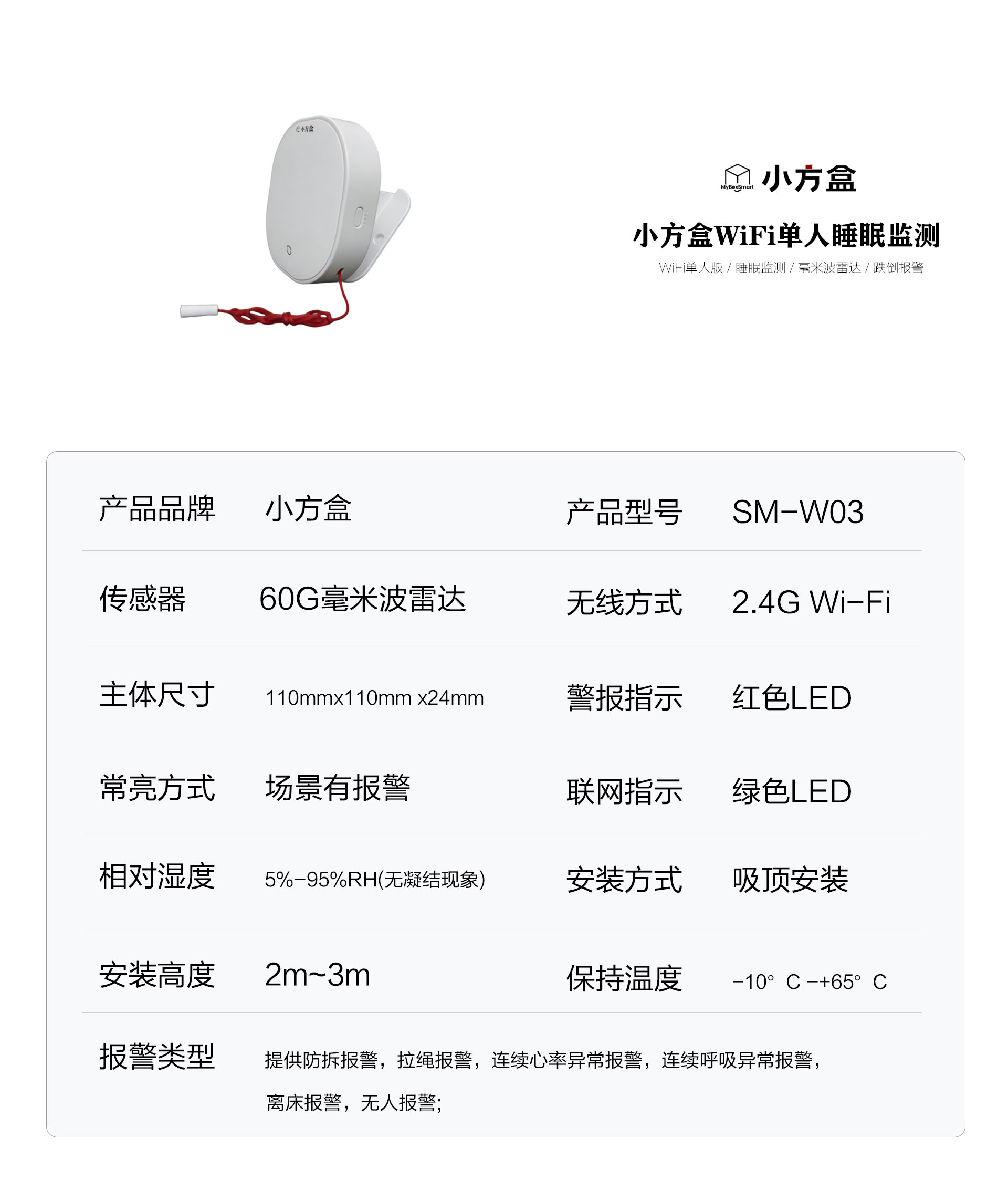 小方盒WiFi单人睡眠监测