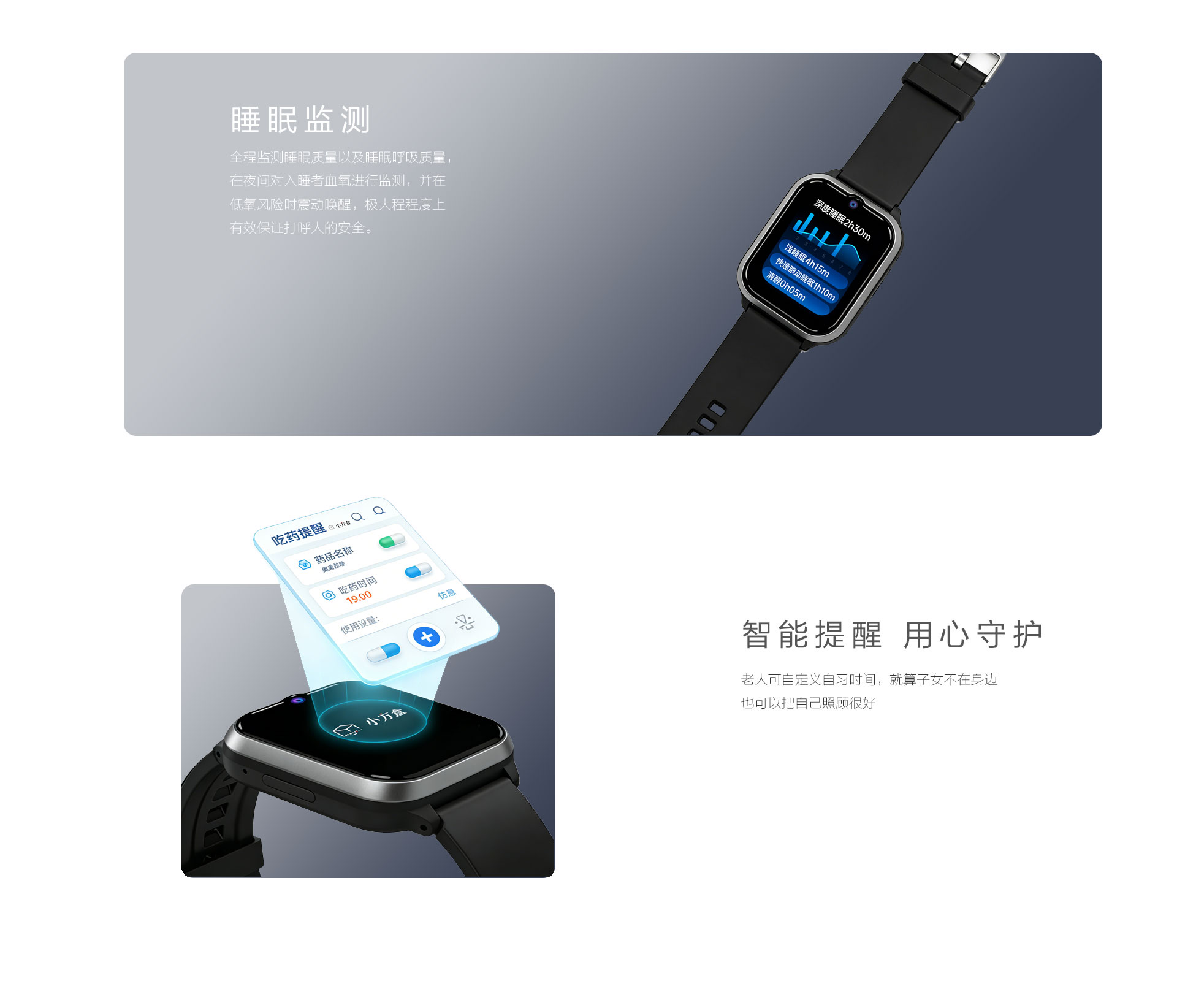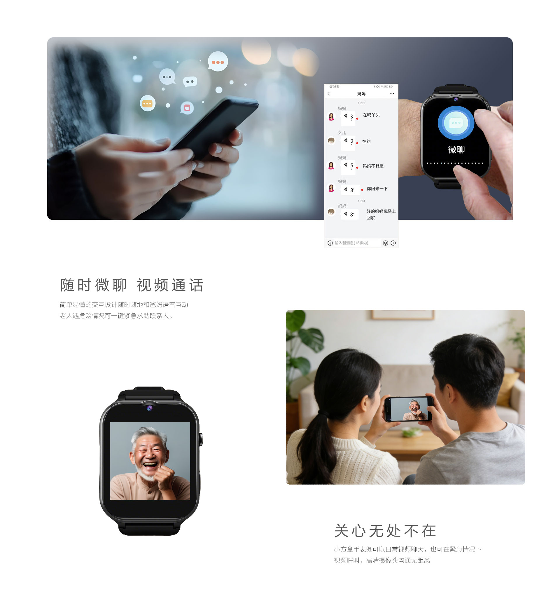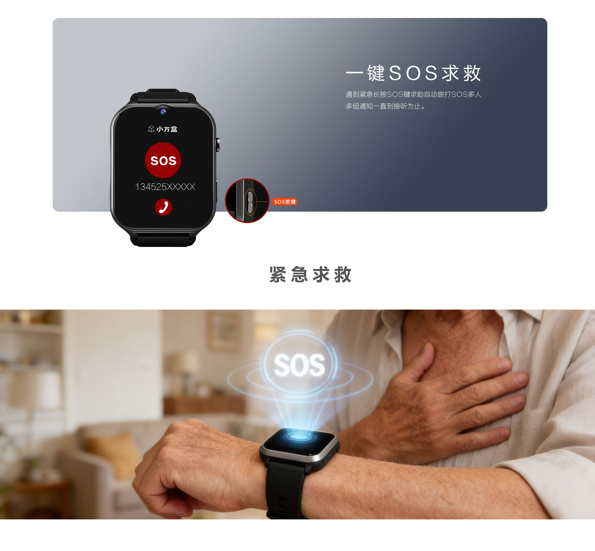 多种报警方式:电话、短信微信公众号、APP、电脑端 多种功能可选:电子围栏、轨迹查看、视频通话、高温报警、心率血氧测量 定位方式:卫星+WIFI+LBS+AGPS 电池:800mAh聚合物电池 防水等级:IP68 通讯:4G全网通